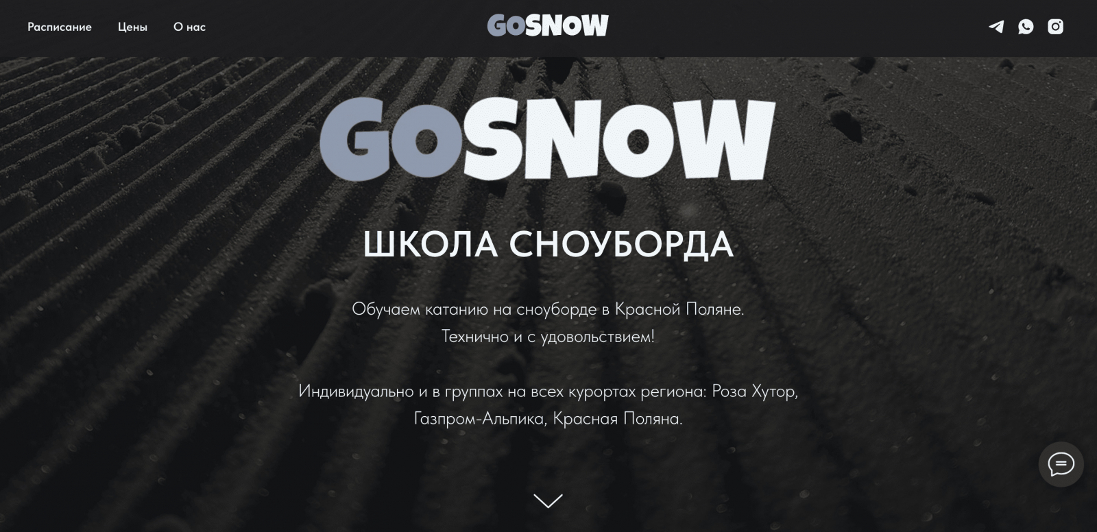 GoSnow — специализированная школа сноуборда в Красной Поляне, предлагающая обучение как индивидуально, так и в мини‑группах на всех основных курортах региона — Роза Хутор, Газпром‑Альпика и Красная Поляна. Школа ориентирована на техничное обучение, развитие навыков карвинга, фрирайда и общего контроля доски, а также предлагает интенсивные курсы и подготовку инструкторов.