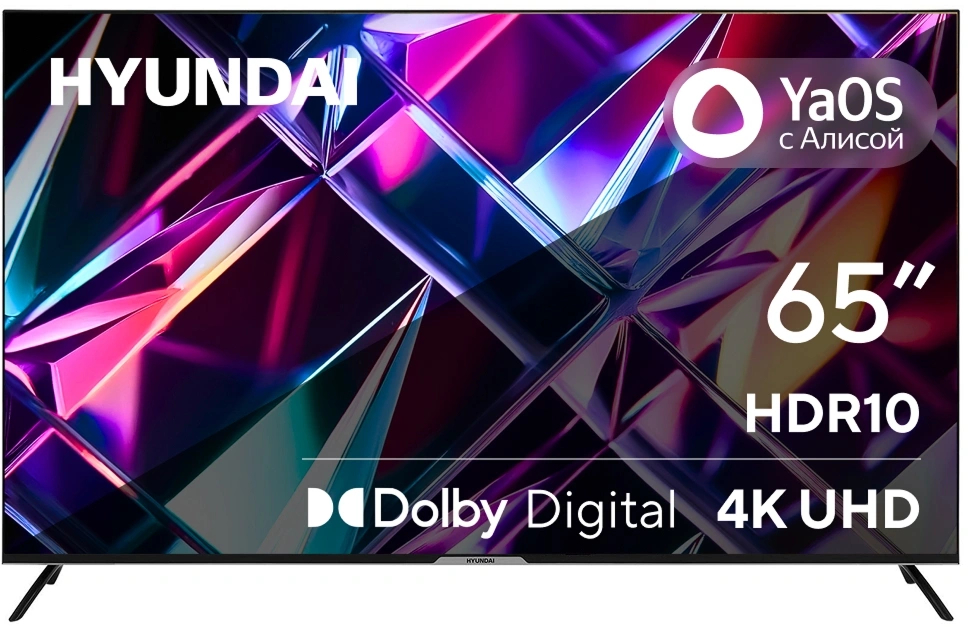 Надёжная рабочая лошадка от известного бренда. Hyundai предоставляет официальную гарантию в России — важный аргумент для тех, кто не хочет проблем с сервисом. VA-матрица даёт хороший контраст, YaOS с Алисой закрывает все Smart TV-потребности. Хороший компромисс между ценой и надёжностью.