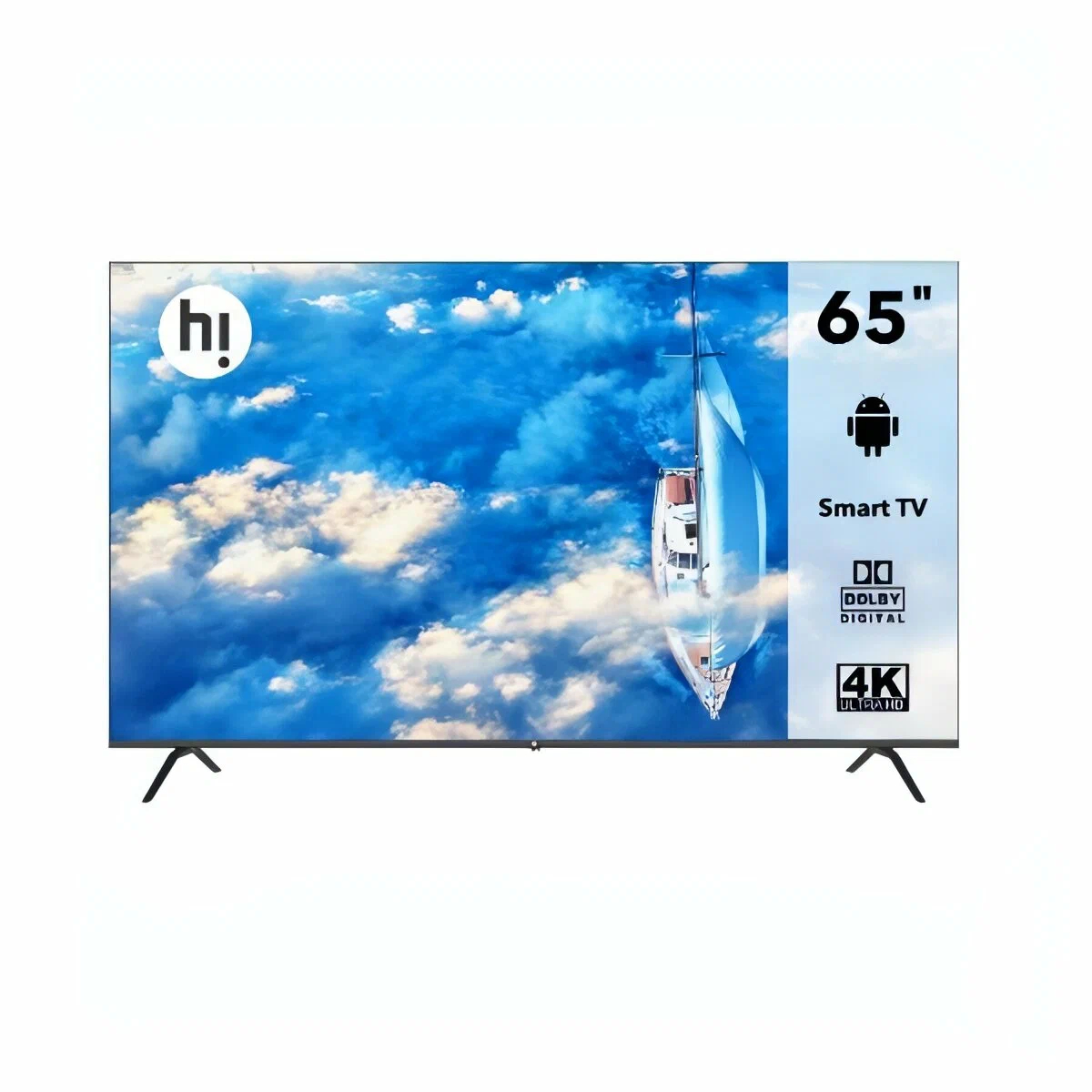 Экран 65 дюймов — это уже другой уровень погружения. Минимальное расстояние для комфортного просмотра — от 2,5 метров, зато кино и спорт превращаются в настоящее шоу. Девять моделей в диапазоне от 39 до 74 тысяч рублей — от ультрабюджетных Hi до брендового LG.