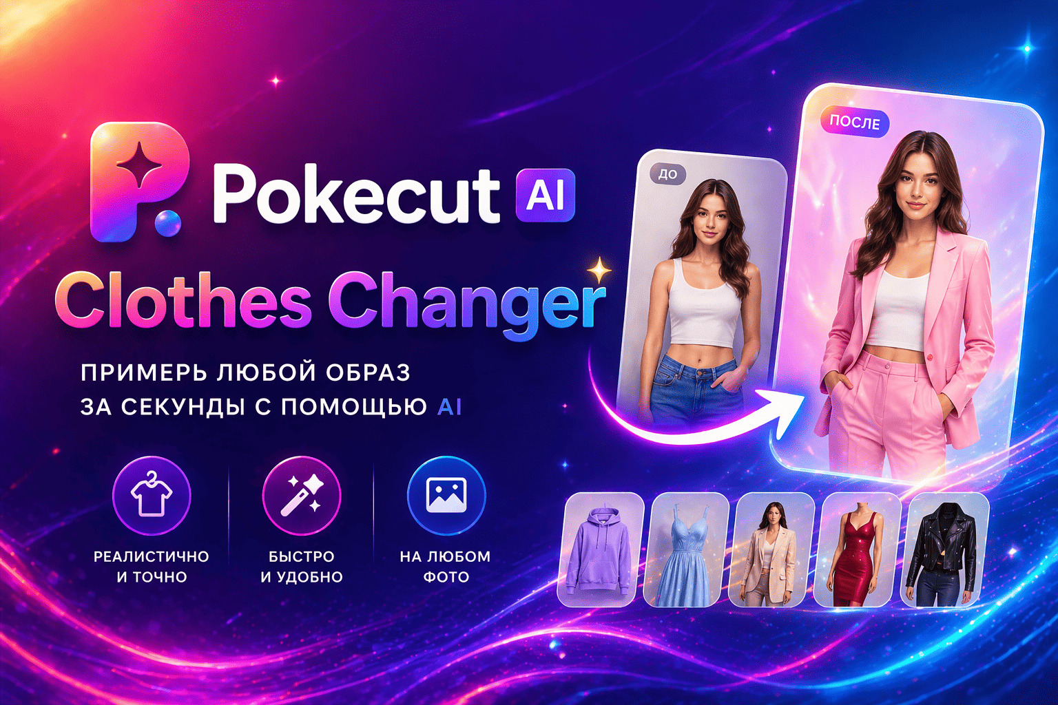 Pokecut — онлайн-инструмент для замены одежды на фото. Легко меняйте стили, исследуйте новые наряды и мгновенно создавайте идеальный виртуальный образ. Просто загружаете фото, выбираете стиль или загружаете фото новой одежды — готово за несколько секунд.