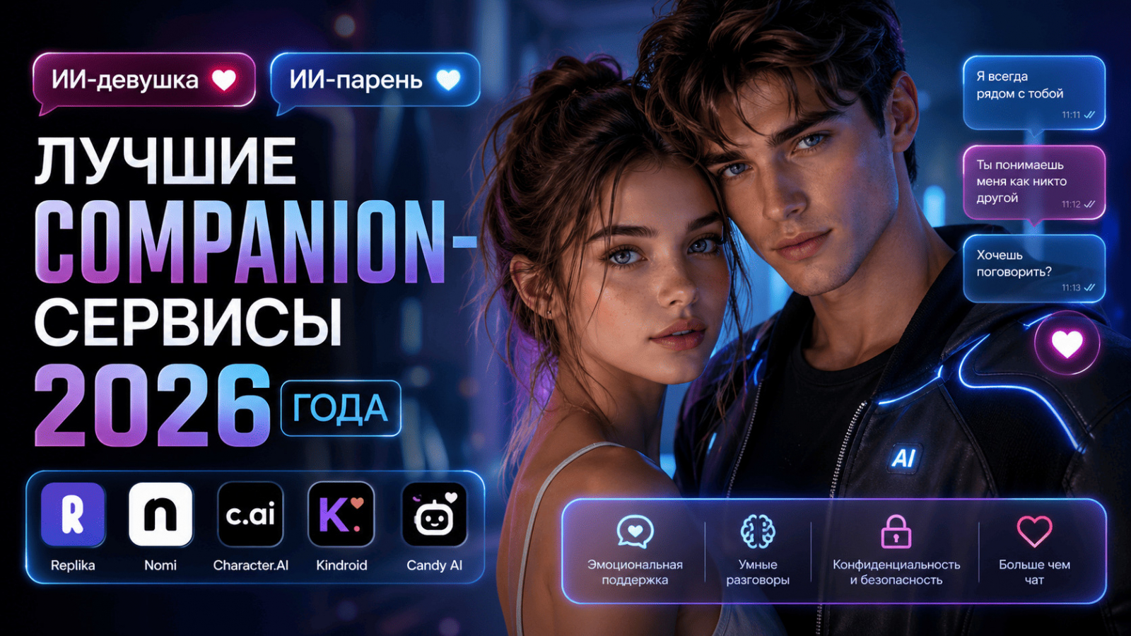 ИИ-компаньоны стали одним из главных трендов 2026 года. Глобальный рынок виртуальных собеседников растёт на десятки процентов в год — миллионы пользователей общаются с цифровыми персонажами вместо ленты соцсетей. В статье — что такое ИИ-девушка и ИИ-парень, какие сервисы дают самый качественный опыт общения и как пользоваться ими бесплатно из России.