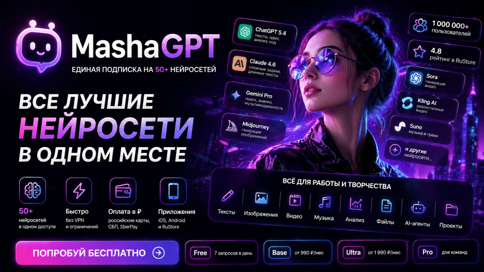 MashaGPT — один из самых массовых агрегаторов, ориентированный на широкий круг пользователей.