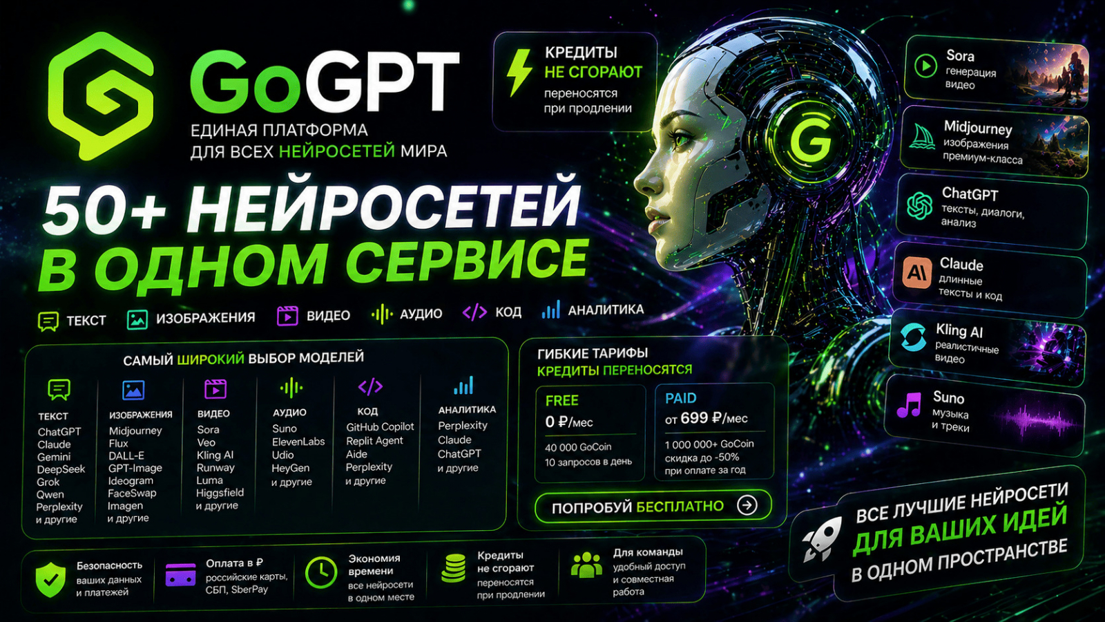 GoGPT — платформа с акцентом на разнообразие моделей и гибкость.