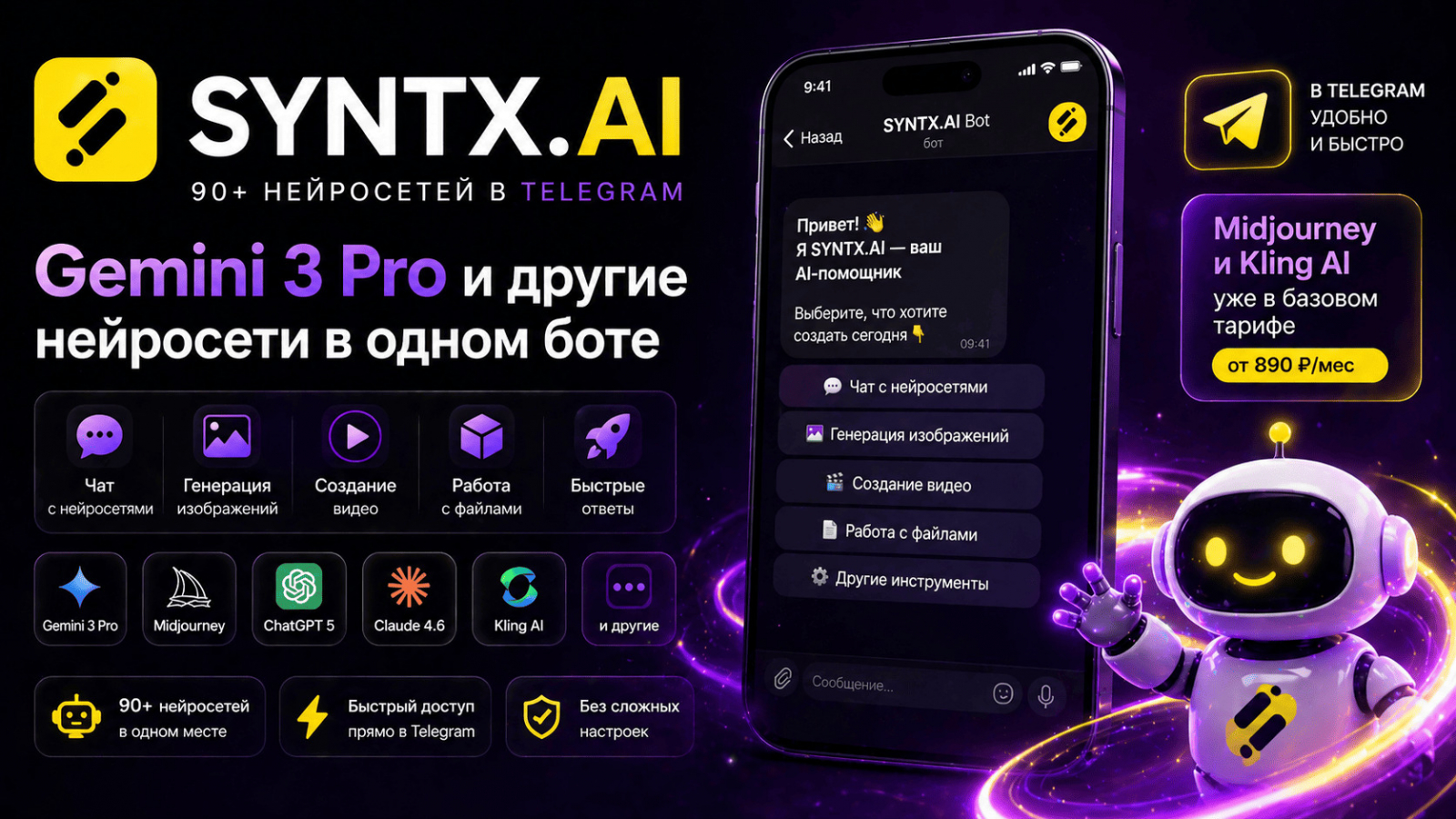 - доступ к AI прямо в Telegram