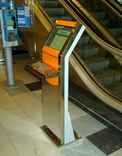 Такую штуку увидел в аэропорту Домодедово. Выглядит как обычный информационный киоск - скучно. Сначала не заинтересовался, но в ожидании рейса решил все же поклацать.