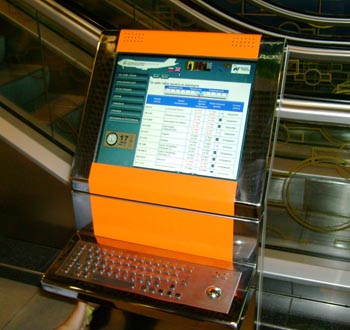 Итак, абсолютно антивандальное исполнение. Стальная клавиатура и шарик вместо мышки. Над шариком- две кнопки. Клавиатура полноценная. Как оказалось, помимо информации от аэропорта о рейсах и службах, есть еще бесплатный доступ в интернет. Смотреть можно любые сайты. Вот, например, на свой блог зашел - все работает.