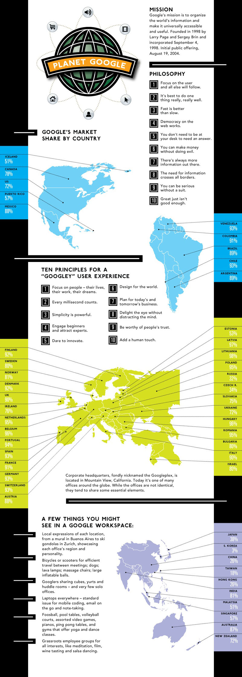 Я уже писал про сайт www.visualeconomics.com, где можно найти много примеров очень функциональной и эстетической графики. Там умеют изобразить понятно и красиво очень сложные и скучные вещи. Вот, например, такая картинка про Google.