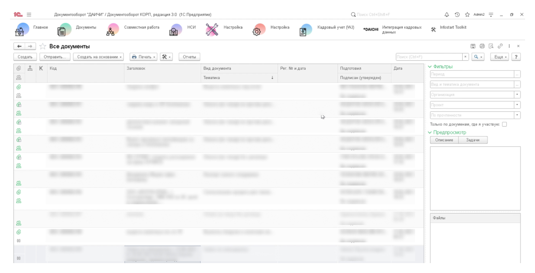 Теперь перечень документов содержится в одном месте. Находить условный регламент или накладную проще, сделаны системные фильтры для поиска. Можно сгруппировать все документы в общую папку и обеспечить быстрый доступ к ним для конкретного сотрудника. Не касающиеся его документы скрываются из навигации.
