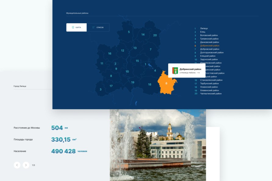 Много времени уделили оформлению графических материалов со статистикой (временными периодами и указателями). Реализовали нестандартные элементы интерфейса — карты и страницы муниципальных районов.