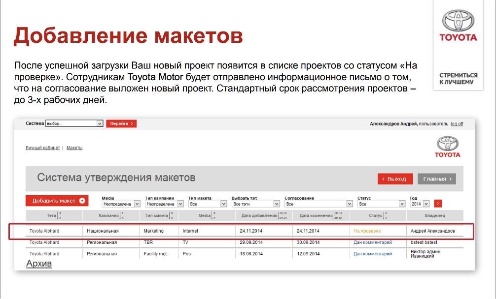 Мы уже не просто делали яркие промо-сайты для новых моделей (Lexus IS, GS450h, Toyota Auris), но и взялась за фундаментальные проекты. Появились первые файлообменники (прообраз будущего экстранета), кредитные калькуляторы и, что важнее всего, — аудит дилерских сайтов.