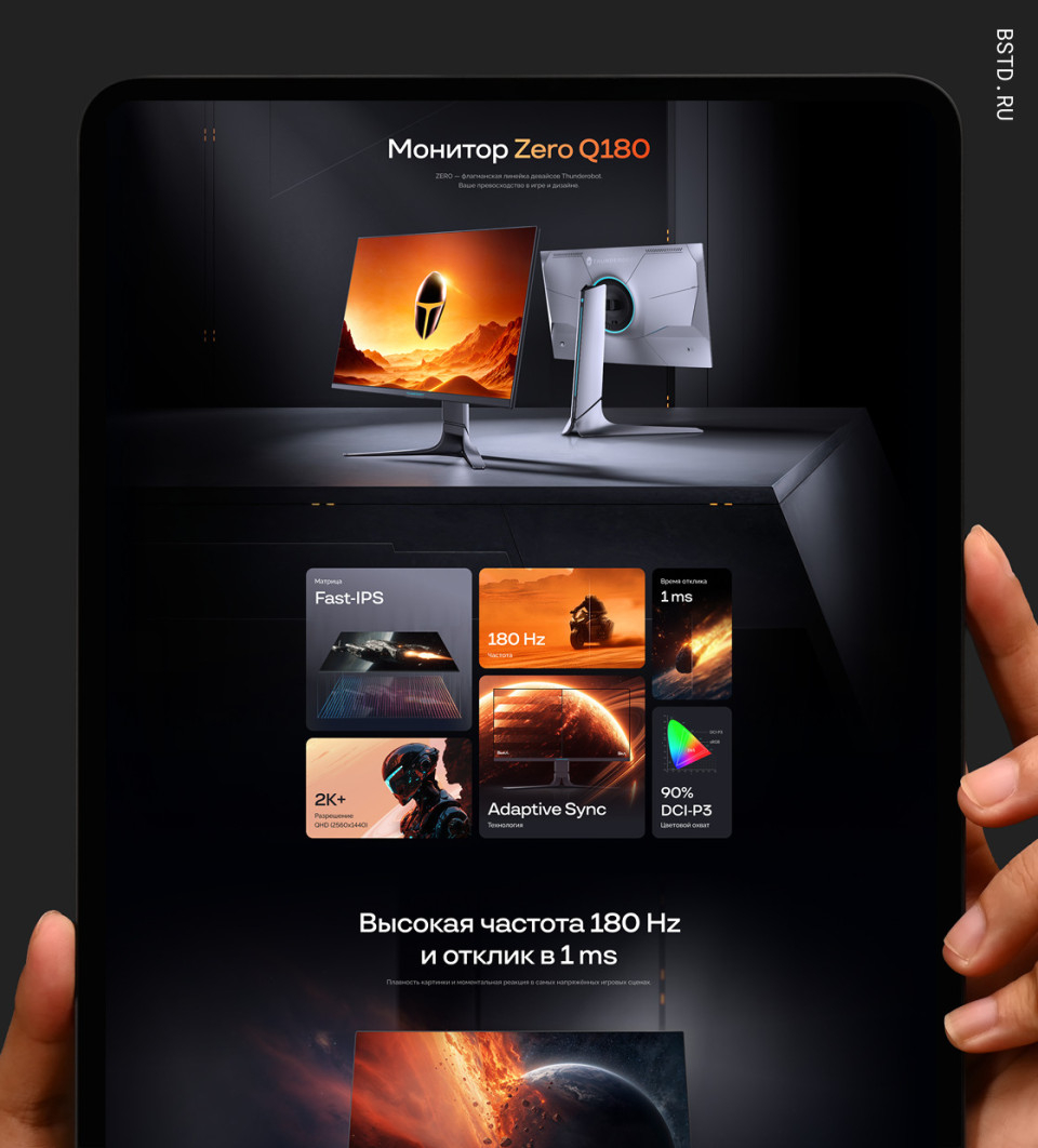 Первым шагом в работе над этим проектом стало создание отдельной посадочной страницы — самостоятельной точки входа для бренда. Интерфейс был построен на контрастной типографике, динамичной композиции и ярких визуальных акцентах на продукции.