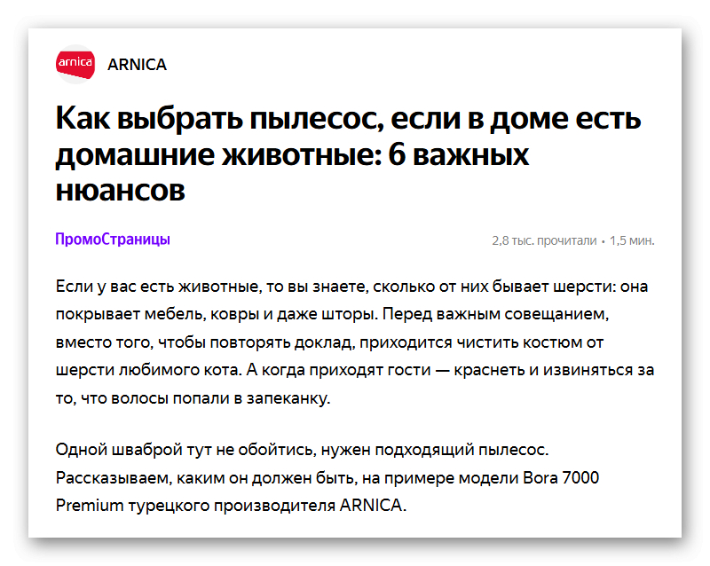 Мы писали для канала ARNICA в Дзене четыре статьи в месяц. Некоторые из них клиент сам ставил на платное продвижение, чтобы привлечь новых подписчиков.