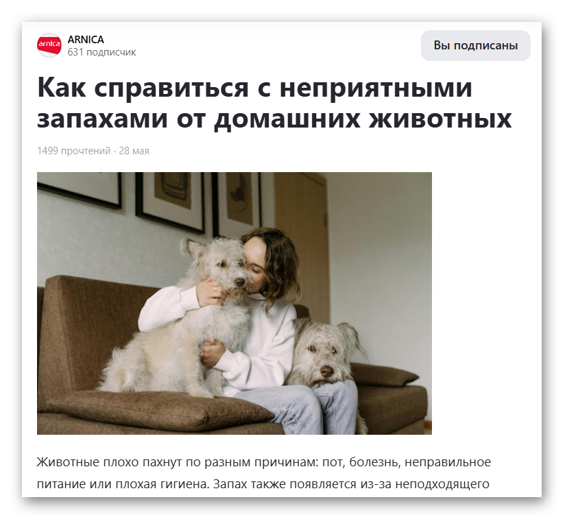 Например, читателям хорошо зашла статья про то, как избавиться от запаха домашних животных дома, — ее прочитали 1499 раз.