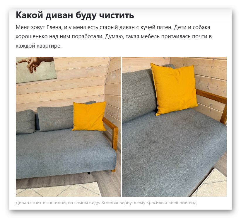 А вот мой любимый формат — юзкейс. Это статья от первого лица. В ней автор описывает свой опыт использования продукта — например пылесоса Arnica Hydra Rain Plus. Внутри много фото, подробное описание всех действий, сравнение «до» и «после». Читатель своими глазами видит результат — такие статьи легко читать, и уровень доверия к ним выше.