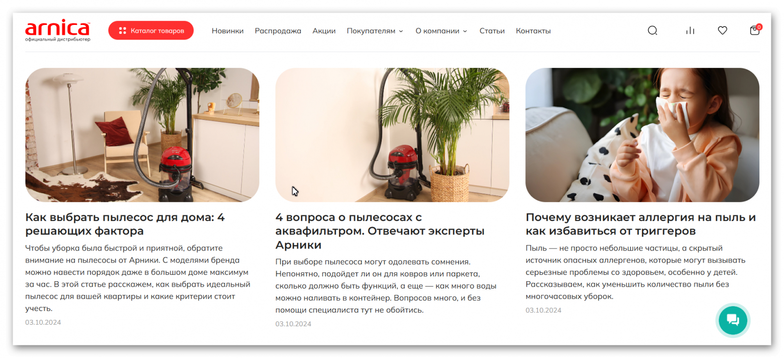 Кажется, что ниша контент-маркетинга в бытовой технике занята крупными брендами типа Samsung и LG. У неизвестного бренда мало шансов пробиться. Но мы взялись за эту задачу вместе с отделом маркетинга компании. Теперь пылесосы ARNICA продают крупные сетевые магазины бытовой техники. А число покупателей растет.