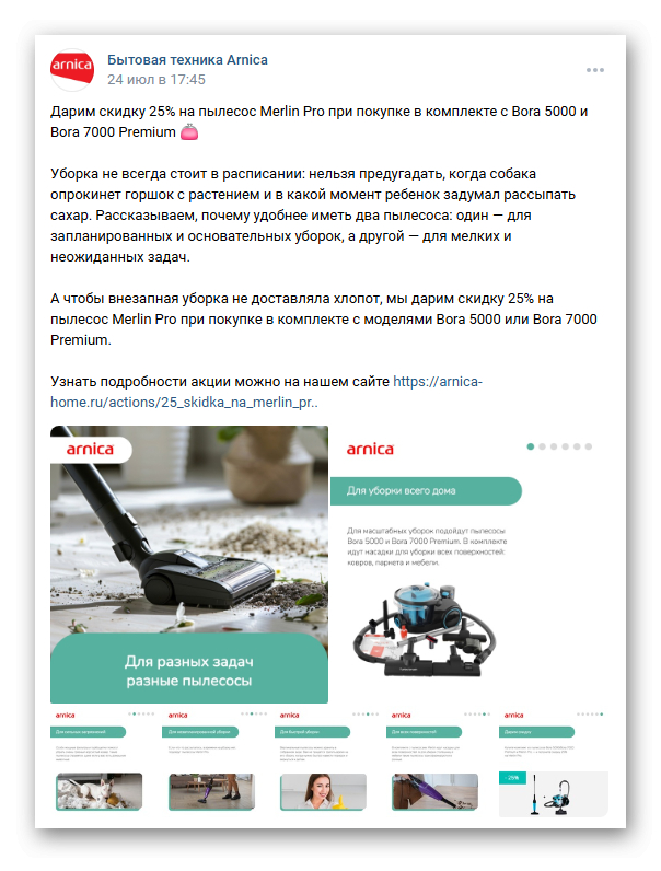 Мы тоже сначала хотели идти в Телеграм, но вовремя одумались: зачем усложнять? ARNICA ведет сообщество во Вконтакте с 2016 года. Там уже 16 тысяч подписчиков. Мы просто немного изменили формат постов — сделали ставку на визуал: