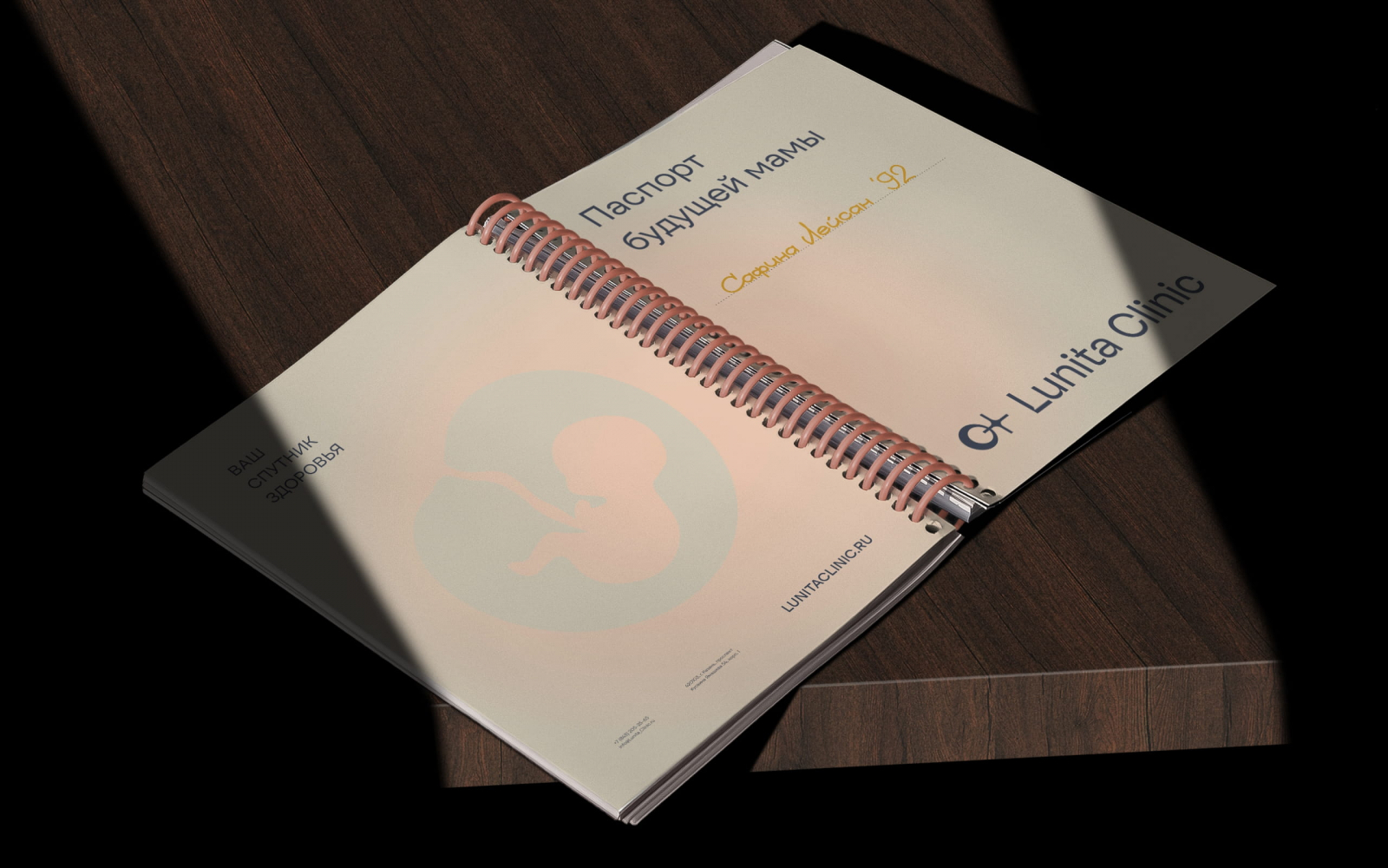 Фирменный знак соединил стилизованный лунный диск с медицинским крестом. Мягкие линии и отсутствие острых углов визуализировали безопасность, а контраст тонкого шрифта подчеркнул экспертность.