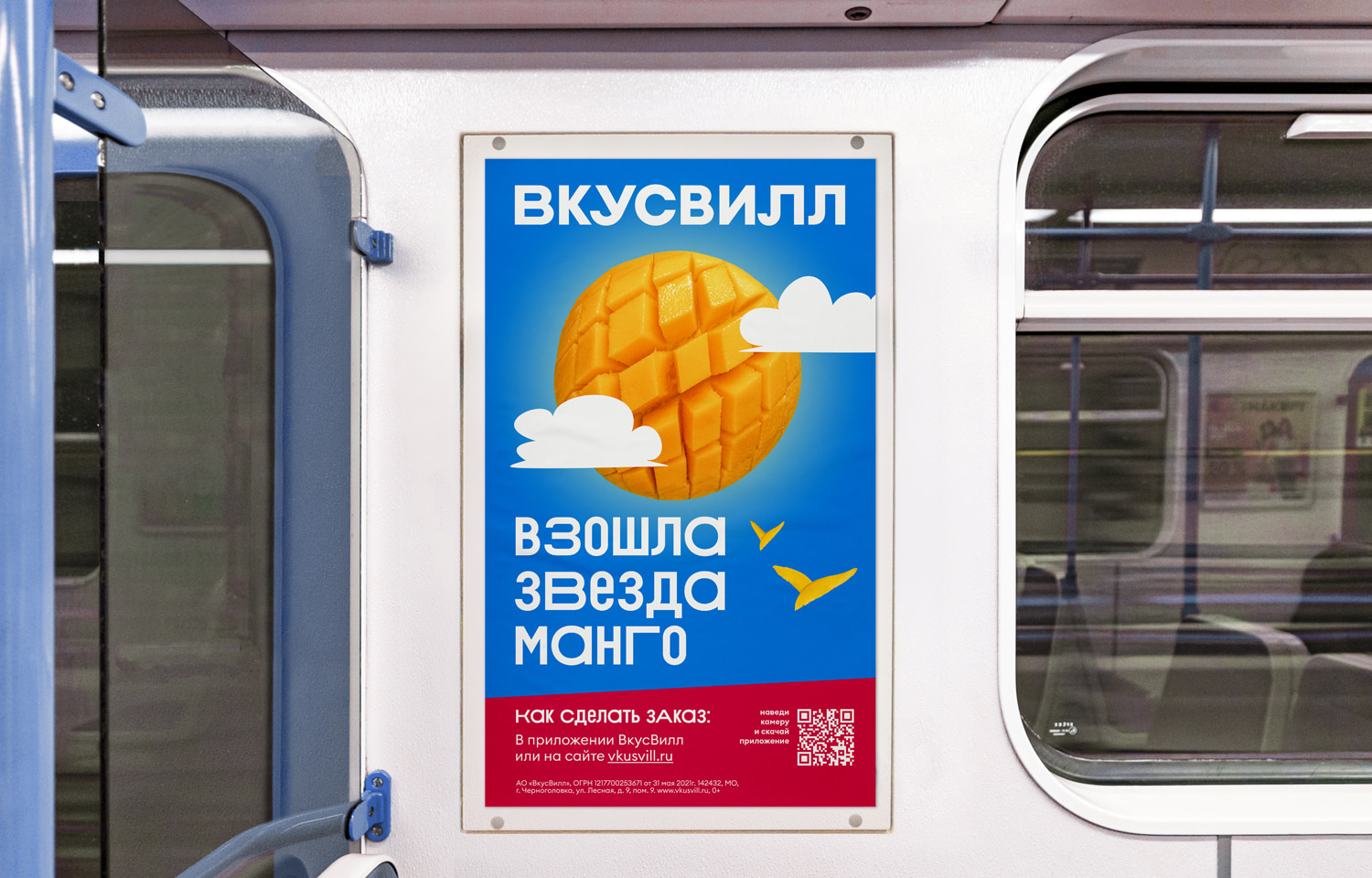 Креатив был адаптирован под множество форматов: от классических билбордов и ситибордов до масштабных и запоминающихся проектов. Среди них – брендированный состав в казанском метро, длинный переход в питерской подземке и медиафасад на Новом Арбате в Москве. Солнечное манго «светило» с бортов транспорта, цифровых экранов и стикеров в метро.