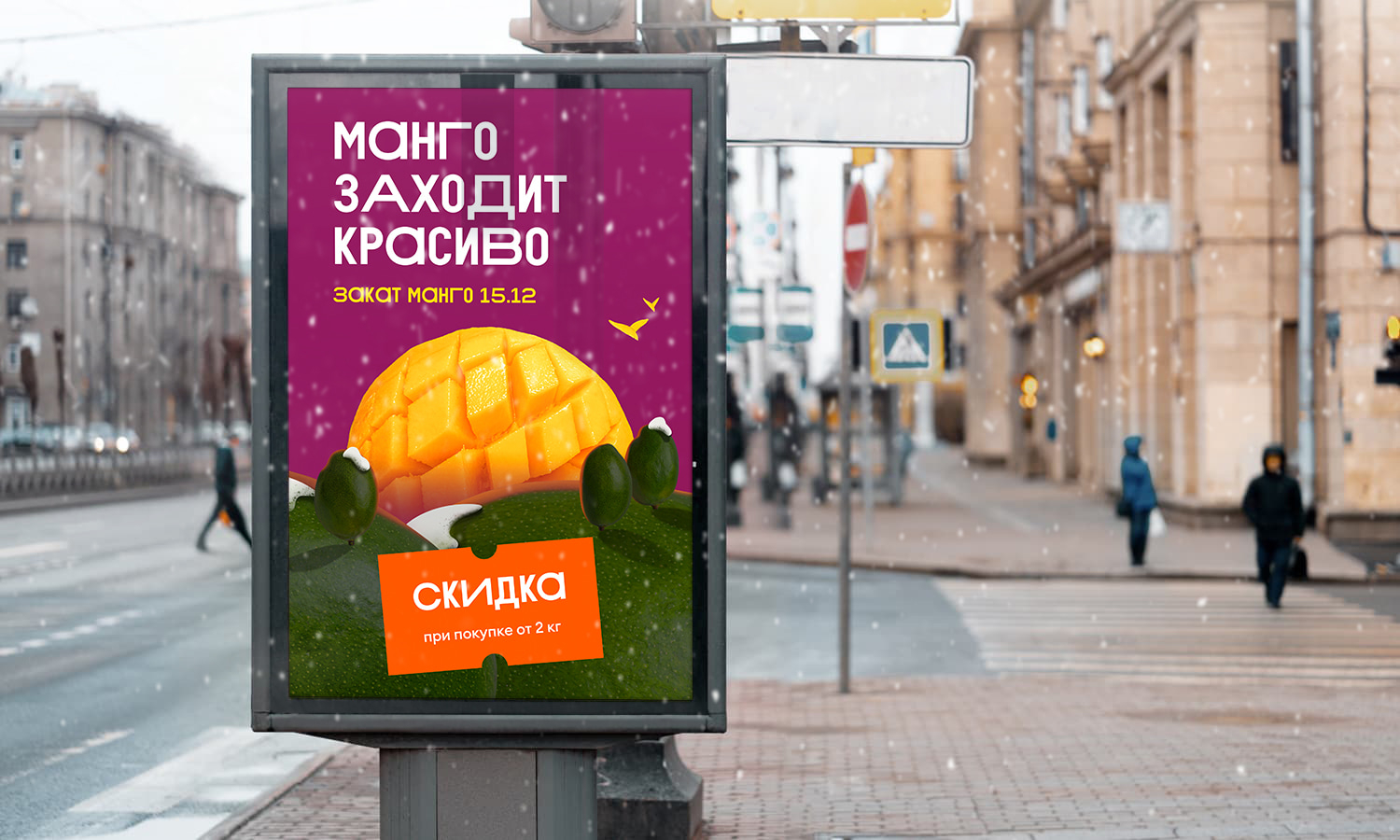 В основе креативной концепции лежала простая и сильная метафора: египетское манго – это осеннее солнце, источник витаминов, тепла и хорошего настроения. Именно она позволила говорить с потребителем на языке позитивных эмоций, а не просто анонсировать цену и наличие.