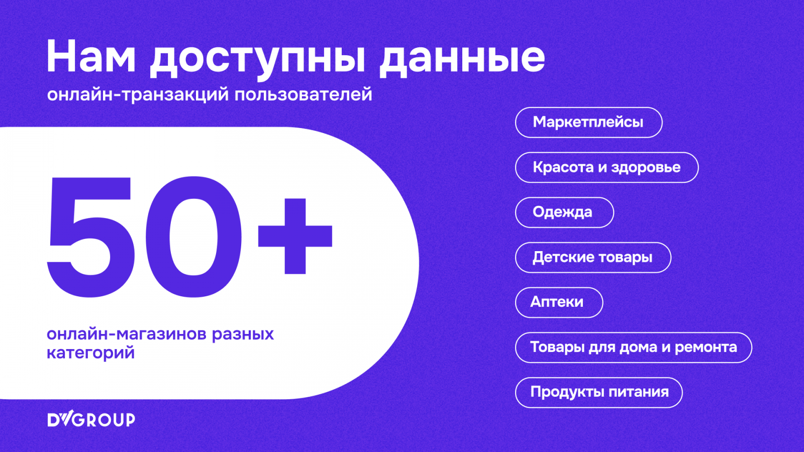 Данные чеков содержат информацию о покупках, включая название товара, цену, дату и время транзакции. Эти данные могут помочь понять потребительские привычки, предпочтения и средний чек. А получать такие данные нам в DV GROUP помогает собственная запатентованная технология, существующая в рамках DV Platform.
