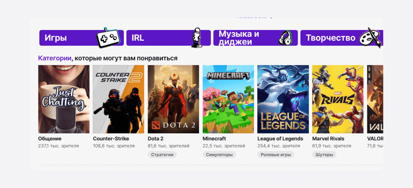 Особый интерес для маркетологов в 2025 году представляют онлайн-трансляции и сервисы, которые их поддерживают, — Twitch, YouTube, Netflix и другие. Такие трансляции интересны тем, что они привлекают большое количество зрителей с определенными интересами. А это означает, что рекламные интеграции при правильном подходе дают хороший результат.