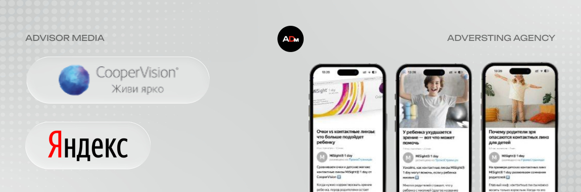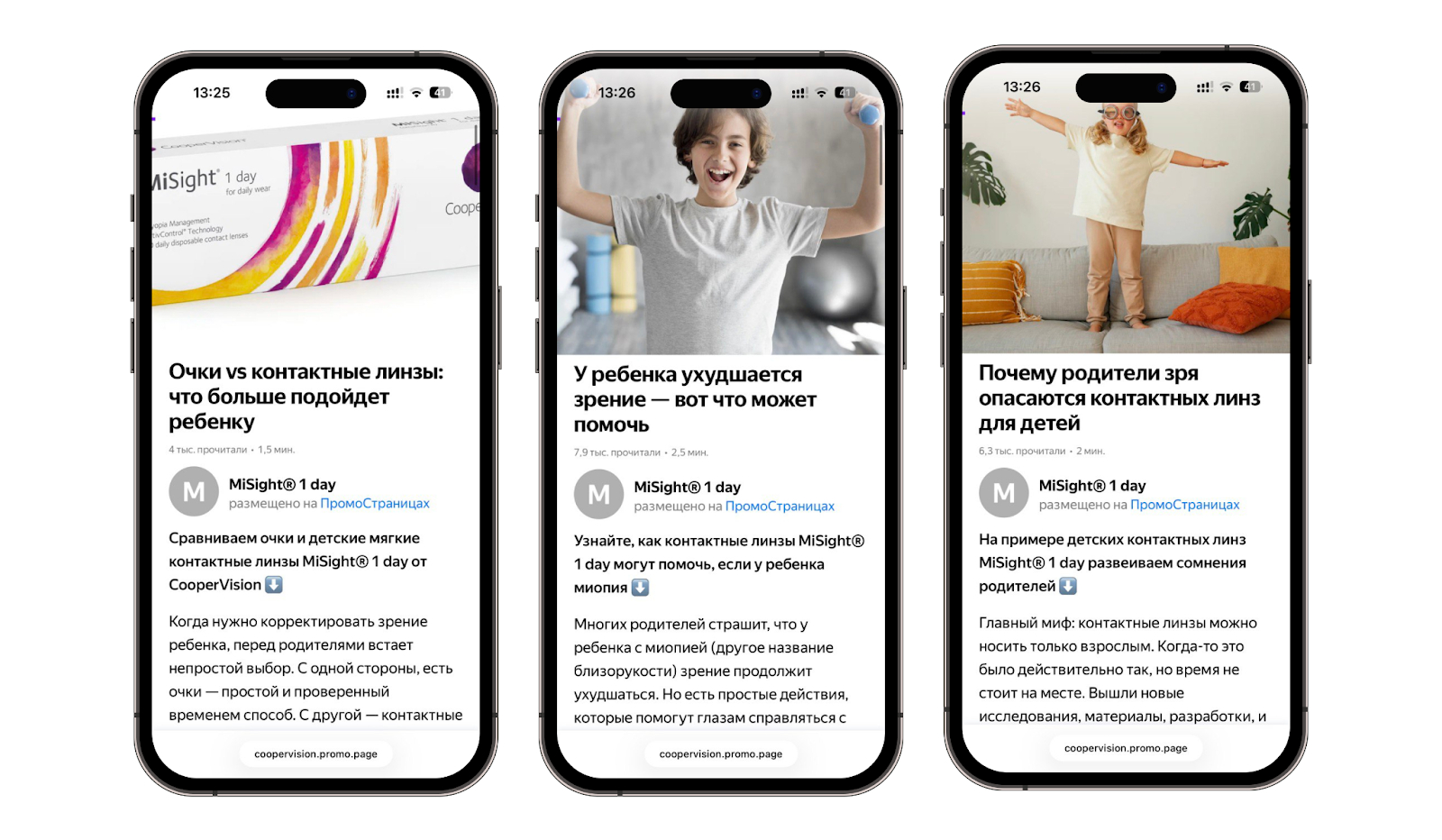 У бренда детских лечебных линз CooperVision узкая аудитория, много возражений, сложная офлайн-продажа. Рекламное агентство полного цикла Advisor Media выбрало ПромоСтраницы как инструмент для привлечения лидов через развитие доверия и образовательный контент. За 1,5 месяца при небольших бюджетах охватили более 3 млн пользователей, снизили стоимость перехода на сайт со 107 до 57 ₽ и связали онлайн-рекламу с офлайн-продажами через систему QR-кодов.