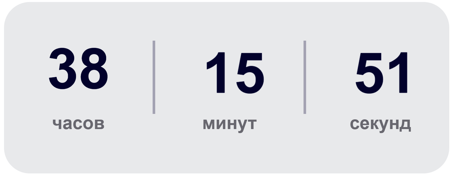 Каждый фрагмент таймера представляет собой отдельную AMP-карусель. Отсчёт оставшегося времени привязан к установленному дедлайну. Например, если финальной точкой станет 31 декабря 2025 года в 23:59, то значение будет выглядеть так: