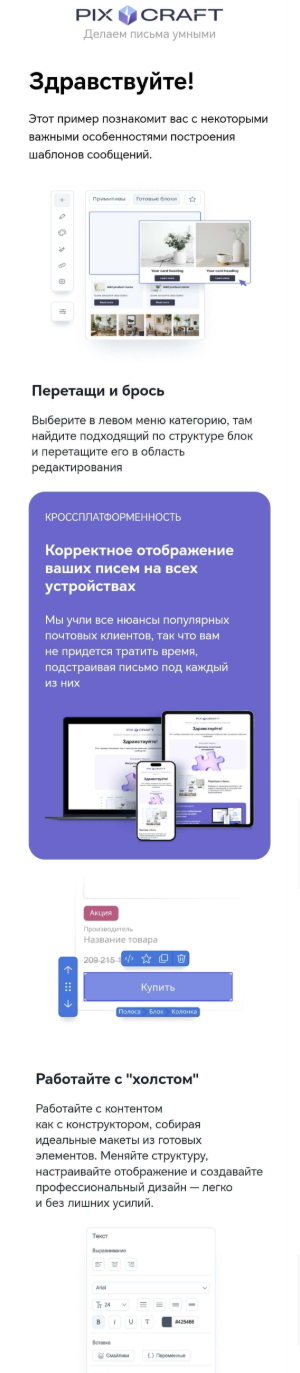 Один из верных способов сделать правильный выбор — попробовать конструктор писем в деле. Зарегистрируйтесь в Pixcraft и получите 14 дней бесплатно для оценки возможностей нашего сервиса. А если хотите узнать больше, напишите нам, чтобы обсудить интересующие вас вопросы.