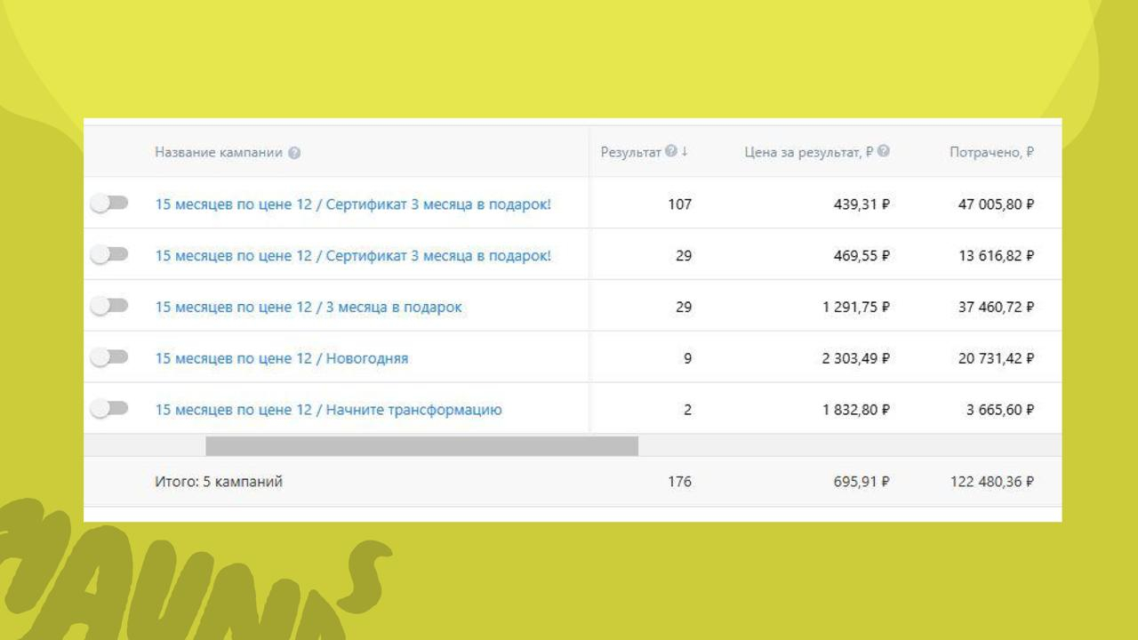 Когда ты четко знаешь, на какие рычаги нужно нажимать, как преподносить оффер, какой длины оптимально делать лид-форму и еще множество мелочей, результат становится прогнозируемым, но от этого не менее приятным. CPL стал стоить клубу на 76% меньше, а лидов стало в 3,4 раза больше! Надеемся, премию маркетологу World Class за это уже выписали :)
