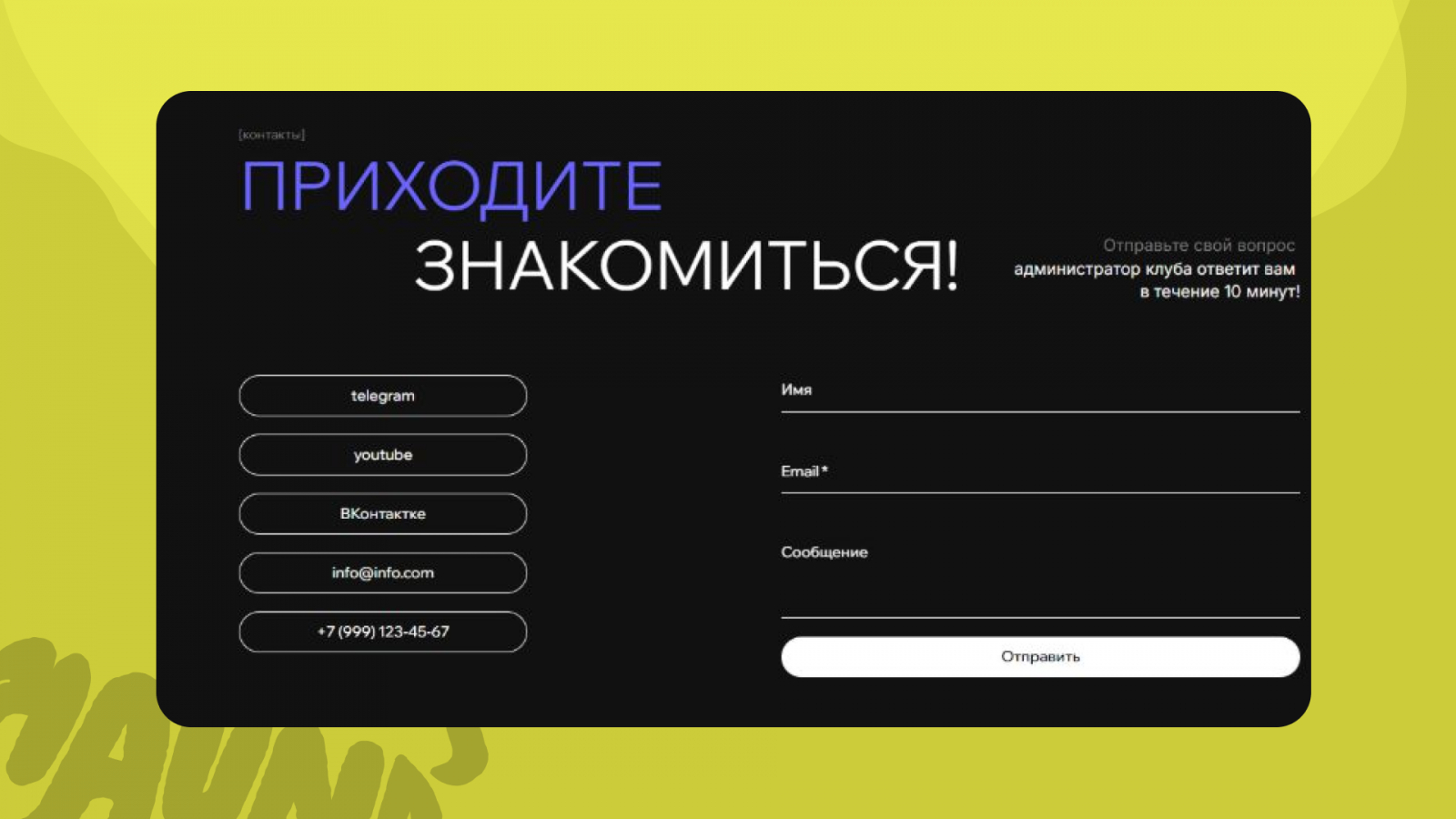Сделайте так, чтобы у потенциального лида не осталось вопросов, куда идти и с кем связаться, если клиент не найдет вход, захочет отменить тренировку или решит уточнить, что взять с собой на пробное.