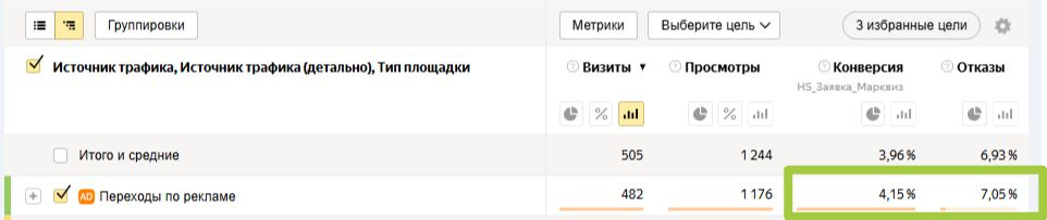 Первый скрин — метрика сайта клиента до переделки: