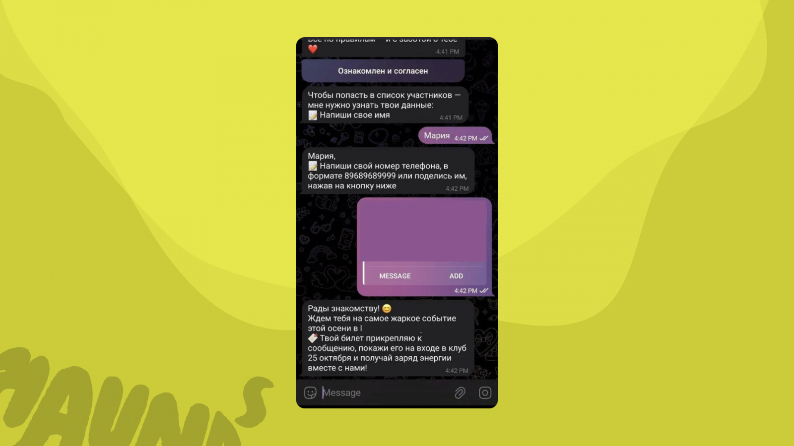 Реальный пример: бот для регистрации на День открытых дверей собрал 135+ участников, которых потом прогрели спецпредложением. База готова для дальнейших рассылок.