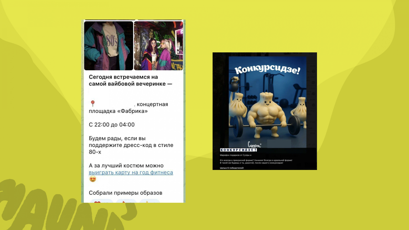 Событийный формат (открытые старты, соревнования, тематические вечеринки) повышает узнаваемость и создает сарафанное радио.