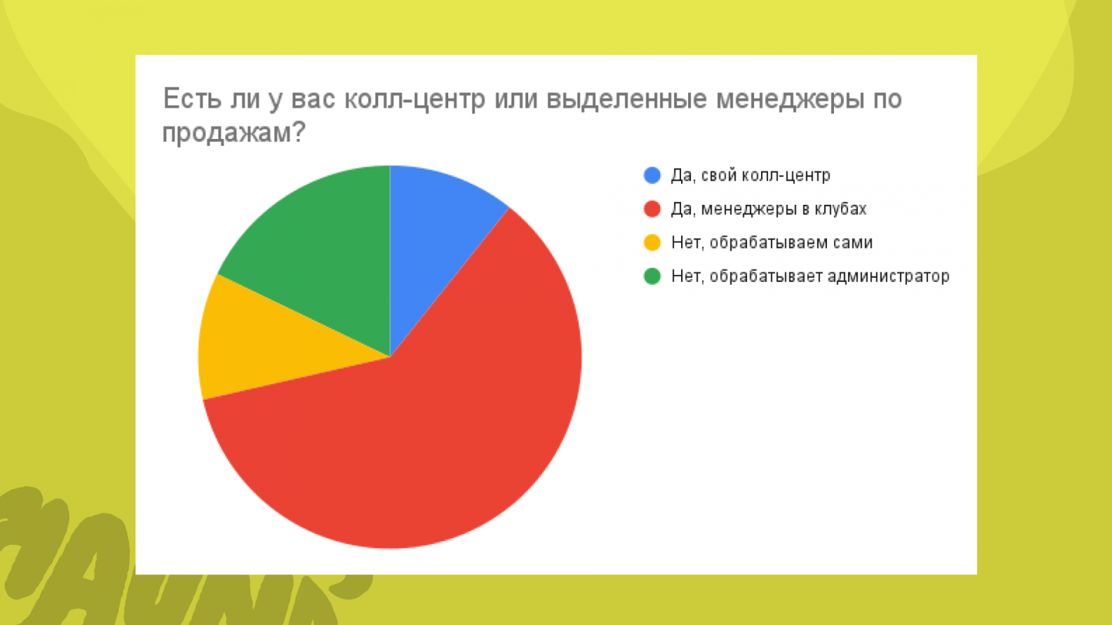 Получается, что клуб не знает свой отток, но уверен, что у него высокий уровень сервиса. Но как понять, что сервис высокий, если нет инфы про количество ушедших клиентов? Это вам на подумать.