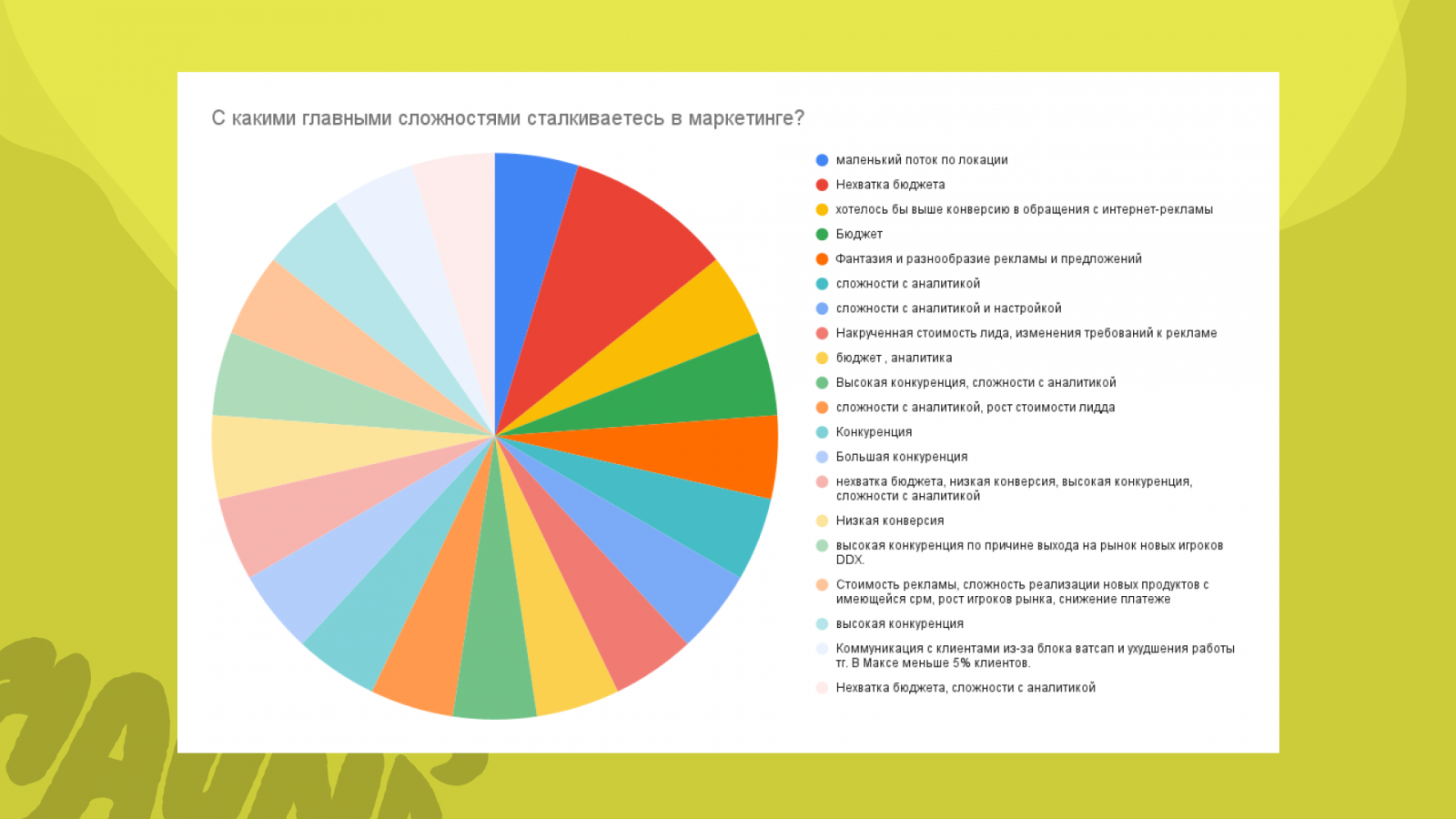3. Сложности с аналитикой занимает третье место. Возможный перевод: «Не знаем, что работает, а что нет, работаем на ощущениях»