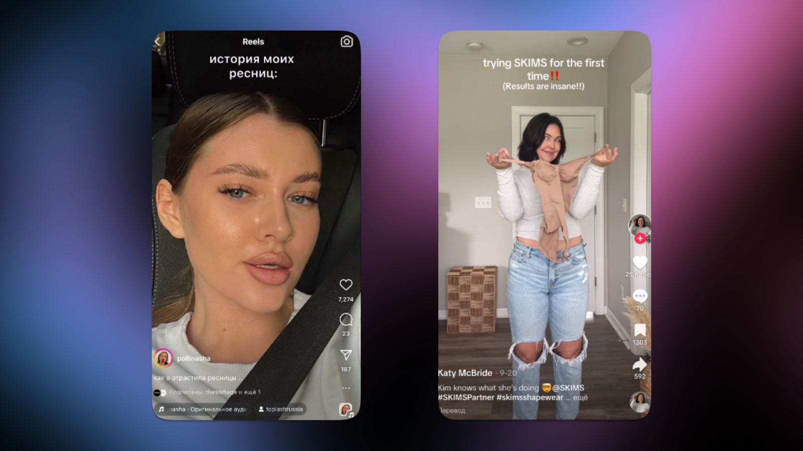 В качестве примеров можно привести популярные форматы, когда блогеры делятся своими первыми впечатлениями от утягивающего белья Skims или демонстрируют видео «до/после» применения сыворотки для ресниц TopLash.