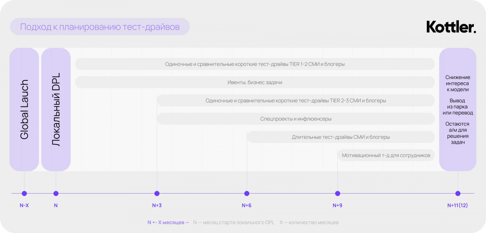 Мы за эффективный тайм-менеджмент. Поэтому заранее планируем расписание с оглядкой на PR-стратегию и цели бренда, а при согласовании тест-драйва и его длительности учитываем: