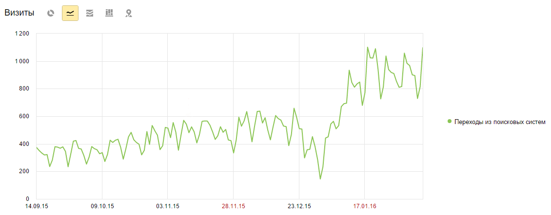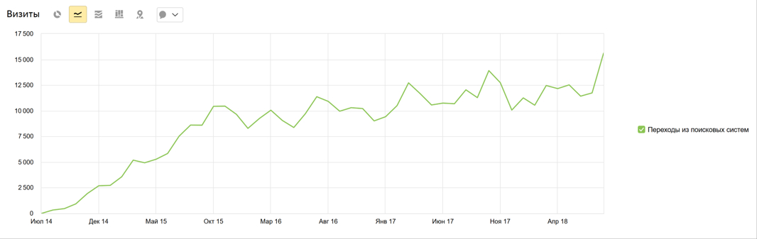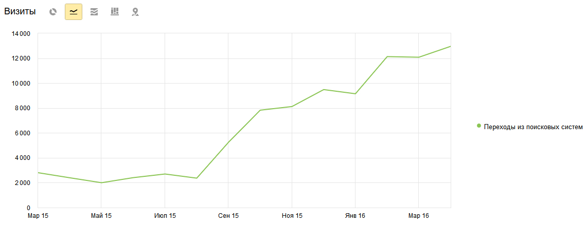Интернет-магазин стройматериалов. Посещаемость довели с нуля до 16 000 переходов в месяц. Количество заявок выросло кратно.