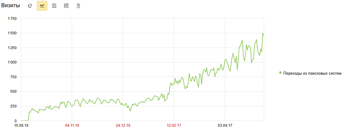Благодаря тому что мы в первую очередь продвигаем самые важные запросы, благодаря тому что знаем, какого ориентировочно трафика можно ожидать в какой месяц продвижения, работа идет уверено и в соответствии с планом.