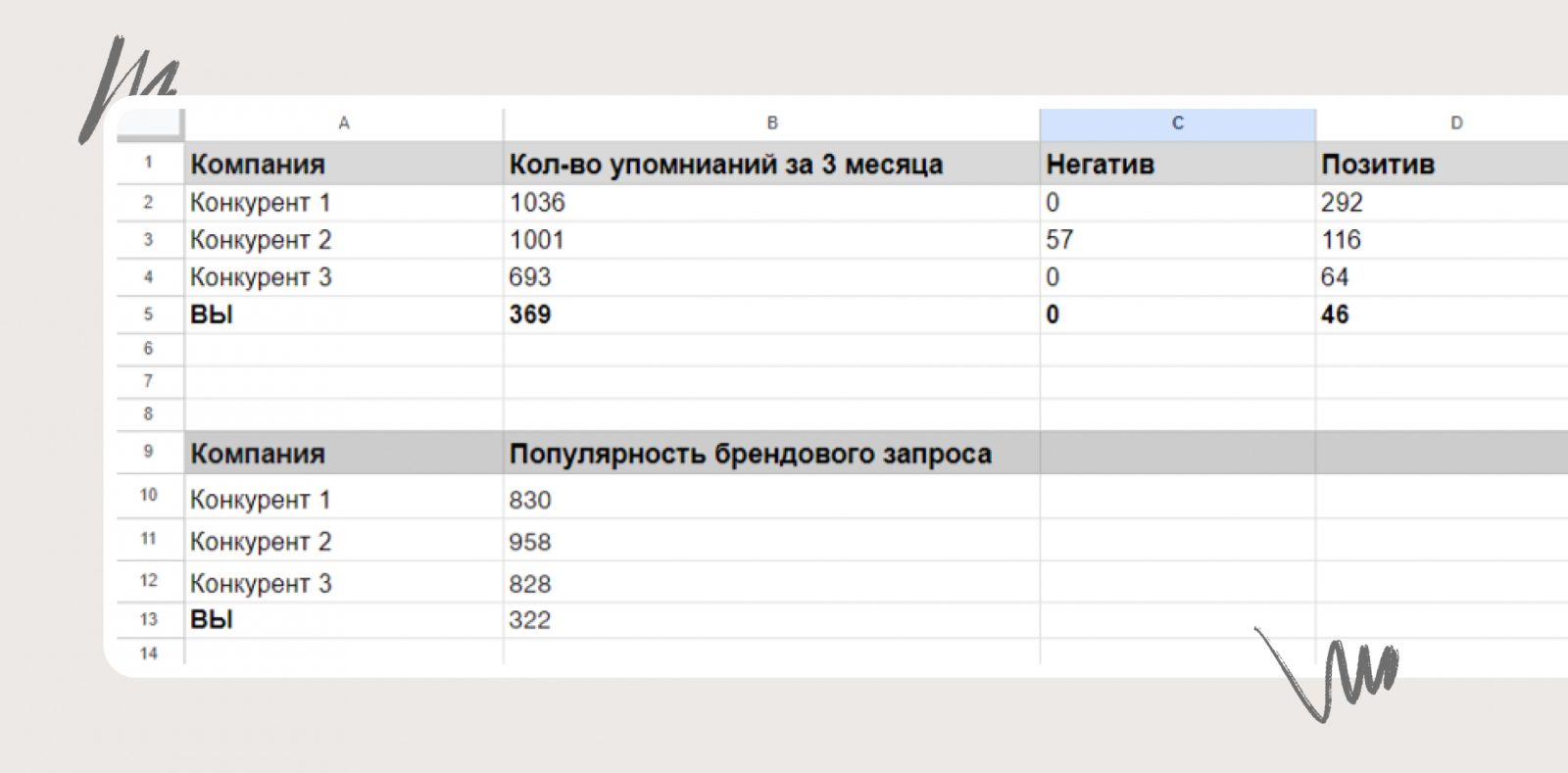 Такая база должна быть в каждой компании, причем желательно, чтобы она постоянно актуализировалась. Рекомендуем вносить не только названия брендов, но и их официальные ресурсы, оставляя комментарии, на что стоит обратить внимание.