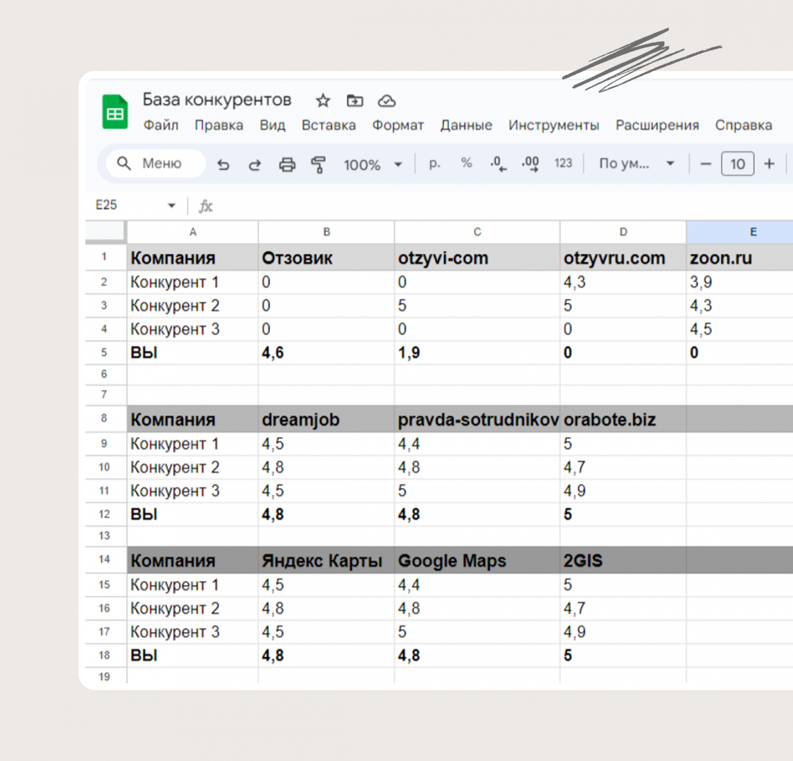 Шаг 1. Собрать базу конкурентов
