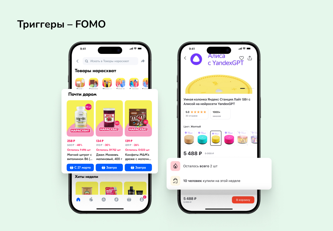 Искусственный дефицит и триггеры FOMO также способствую росту продаж. Например, в Ozon есть раздел «На расхват», где показывают товары, которые скоро исчезнут из наличия.