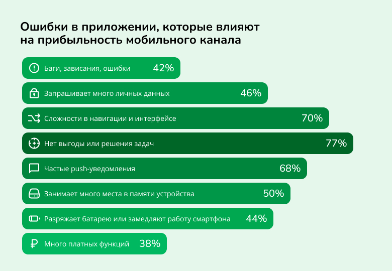 Люди устанавливают мобильные приложения по разным причинам: их привлекает интересная идея, эксклюзивные функции, стильный дизайн или маркетинговая акция. Однако удержать пользователя сложнее, чем его привлечь. Чаще всего приложения удаляют из-за потери интереса или несоответствия ожиданиям. В результате многие программы исчезают со смартфонов спустя короткое время.