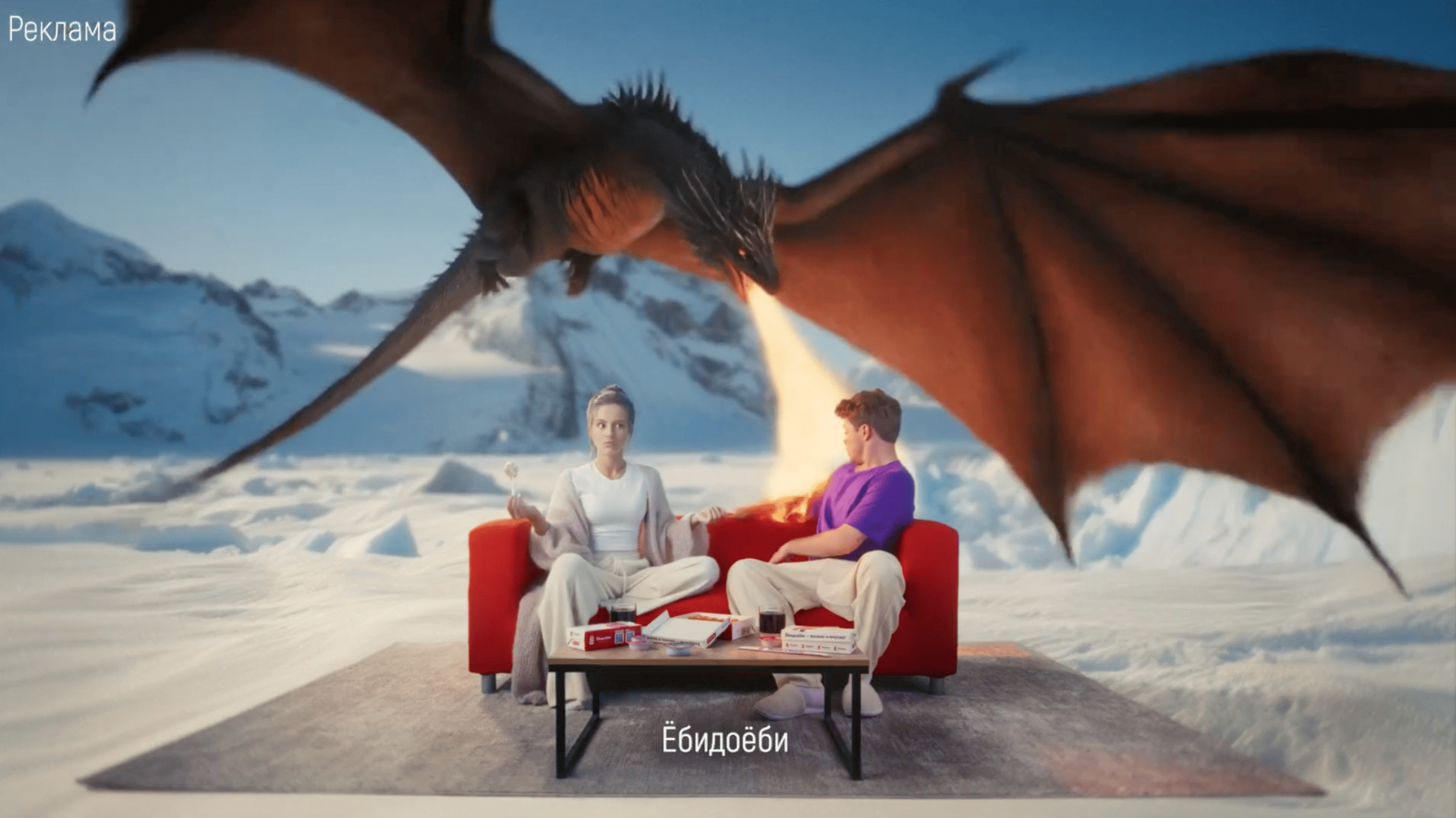 В-третьих, добавить ИИ-эффекты. Для придания клиповости и динамичности ролику команда агентства создала узнаваемые образы из фильмов и сериалов, обработанные с помощью нейросети: «Сияние», «Сумерки», «Игра престолов». Отсылки к фильмам и аниме в том числе помогли воссоздать в ролике всем знакомую ситуацию: пятница, вечер, вы дождались доставку и погрузились в атмосферу любимой истории.