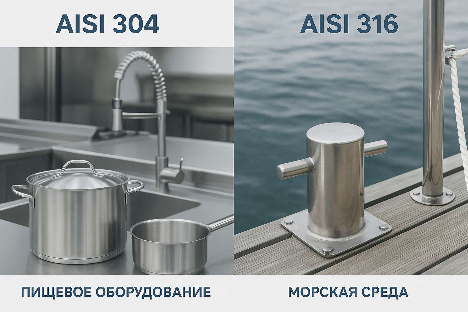Вывод: молибден в составе AISI 316 делает её предпочтительной для агрессивной среды, но увеличивает стоимость на 15–30%.