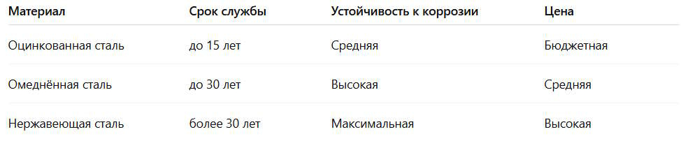 Выбор материала влияет на срок службы заземления, его устойчивость к агрессивной среде и стоимость монтажа. На рынке представлены три основных варианта:
