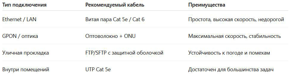 Если вы не уверены, какой кабель выбрать, обратитесь за консультацией к специалистам или вашему провайдеру — они подскажут оптимальный вариант именно под вашу инфраструктуру.
