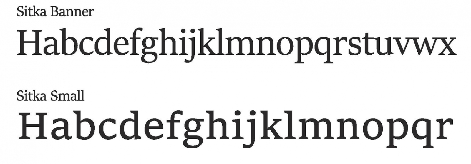 Исследователи не обошли вниманием и оптически масштабируемые шрифты, такие как Sitka, разработанные Картером и Ларсоном в 2016 году.