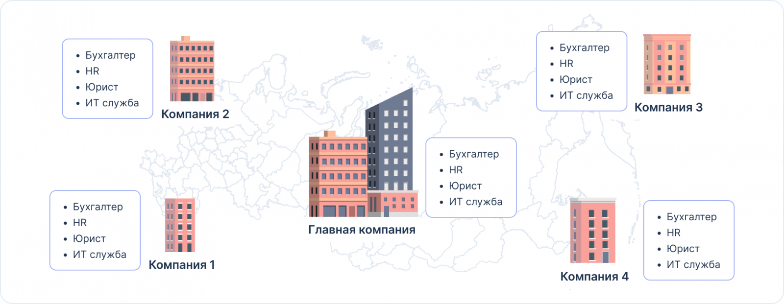 В компаниях постоянно возникают рутинные задачи, которые поддерживают работу бизнеса. Бухгалтерия оплачивает счета, юристы готовят документы, кадровики оформляют новых сотрудников — под каждую цель нужен выделенный специалист или подрядчик на аутсорсе. Если юридических лиц много, таких команд для обслуживания могут быть десятки — возникают путаница и большая нагрузка.