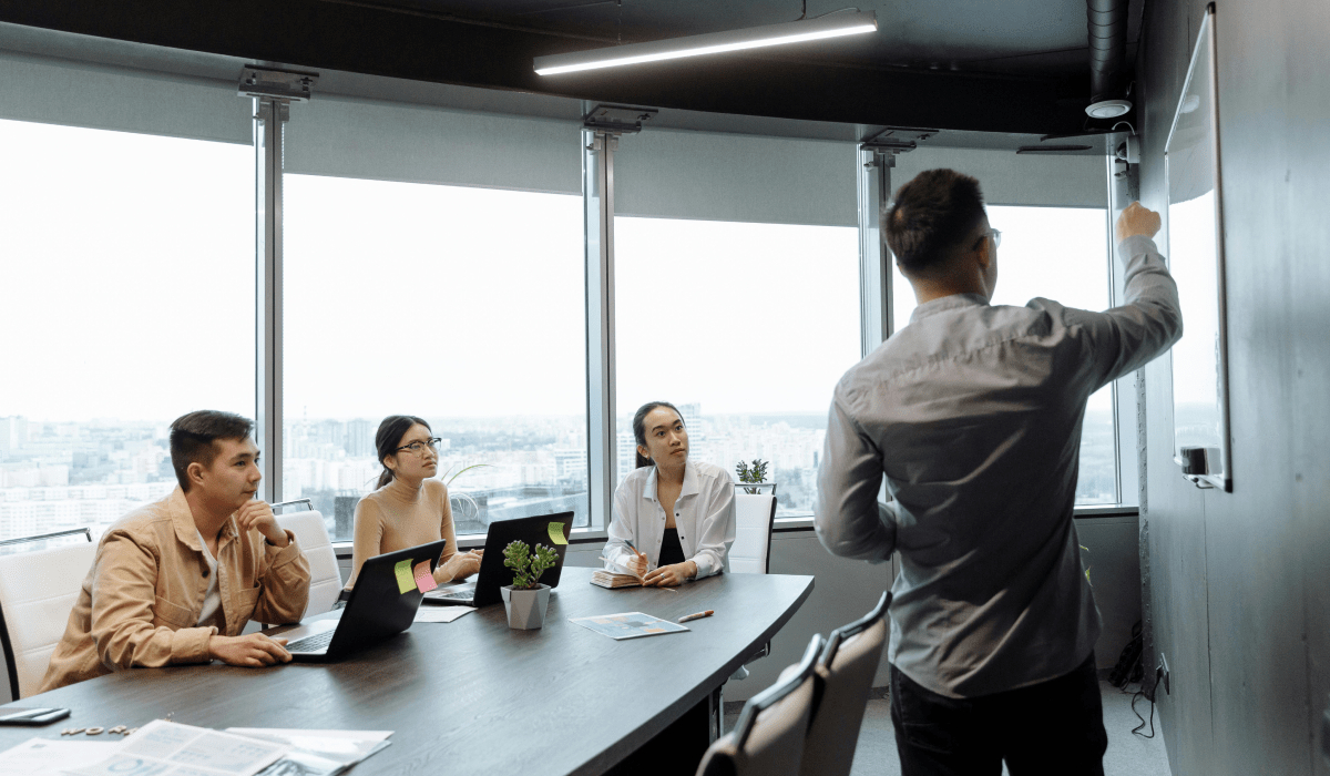 Новый руководитель ведёт встречу. Быстро, чётко, по делу.